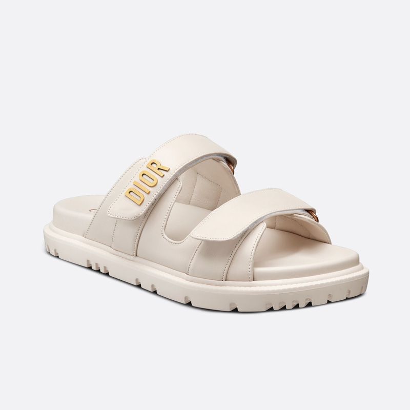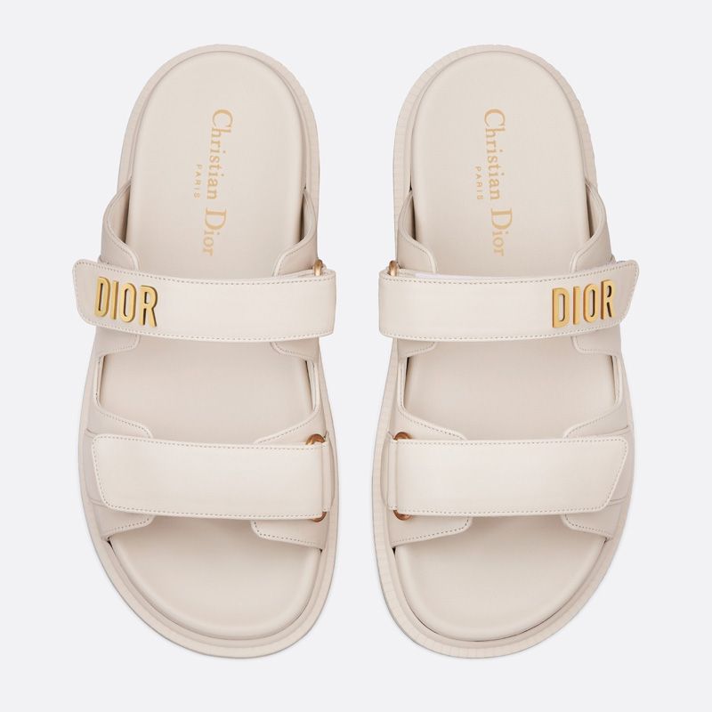 The standout feature of these slides is the gold-finish metal DIOR signature, which adds a touch of sophistication. For a tailored fit, the DiorAct Slides come with two adjustable scratch straps that ensure both style and support.