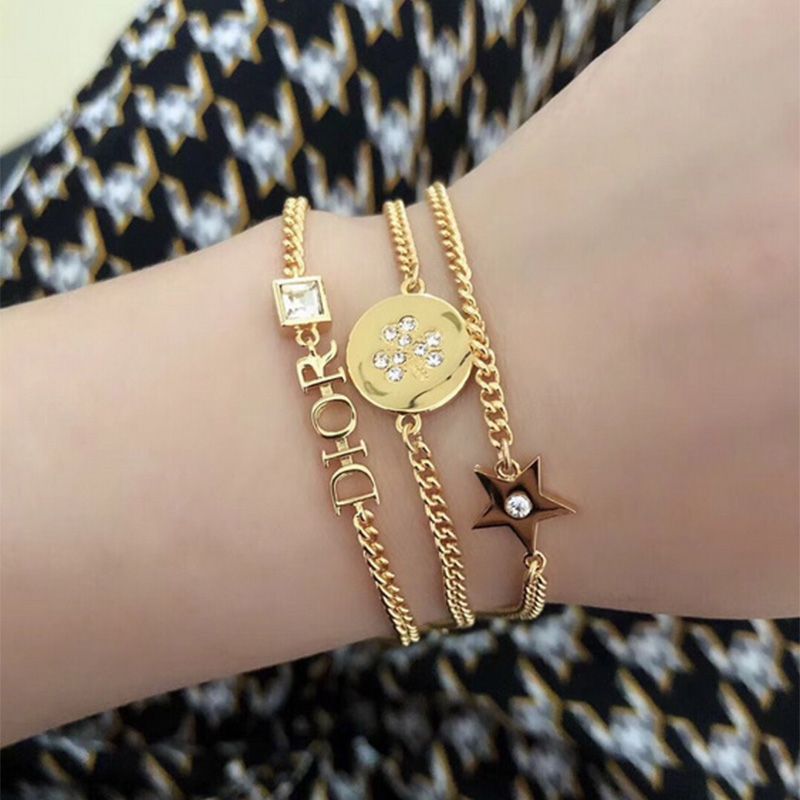 This exquisite set features three unique bracelets, each boasting iconic Dior, Star, and Clover Medallion signatures. The Clover Medallion is adorned with shimmering white crystals, adding a touch of glamour to any ensemble. Whether you’re dressing up for a night out or adding flair to your casual attire, these bracelets complement any look effortlessly.