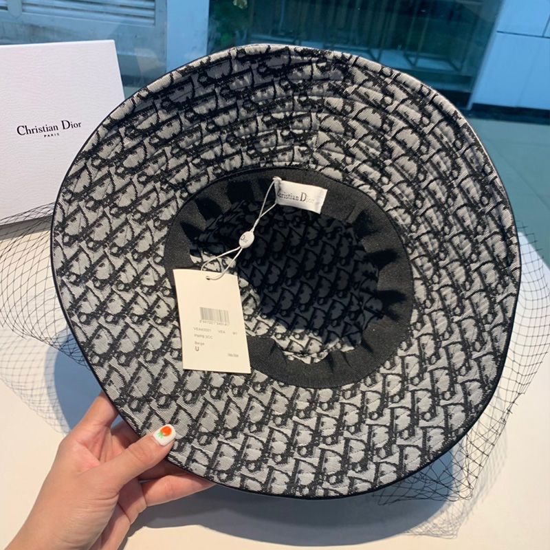 Delicately designed, the hat includes a sophisticated nylon veil that adds an air of elegance, making it the perfect accessory for both casual outings and upscale events. The small brim, accented with meticulous topstitching, offers a refined touch that showcases Dior’s commitment to craftsmanship.