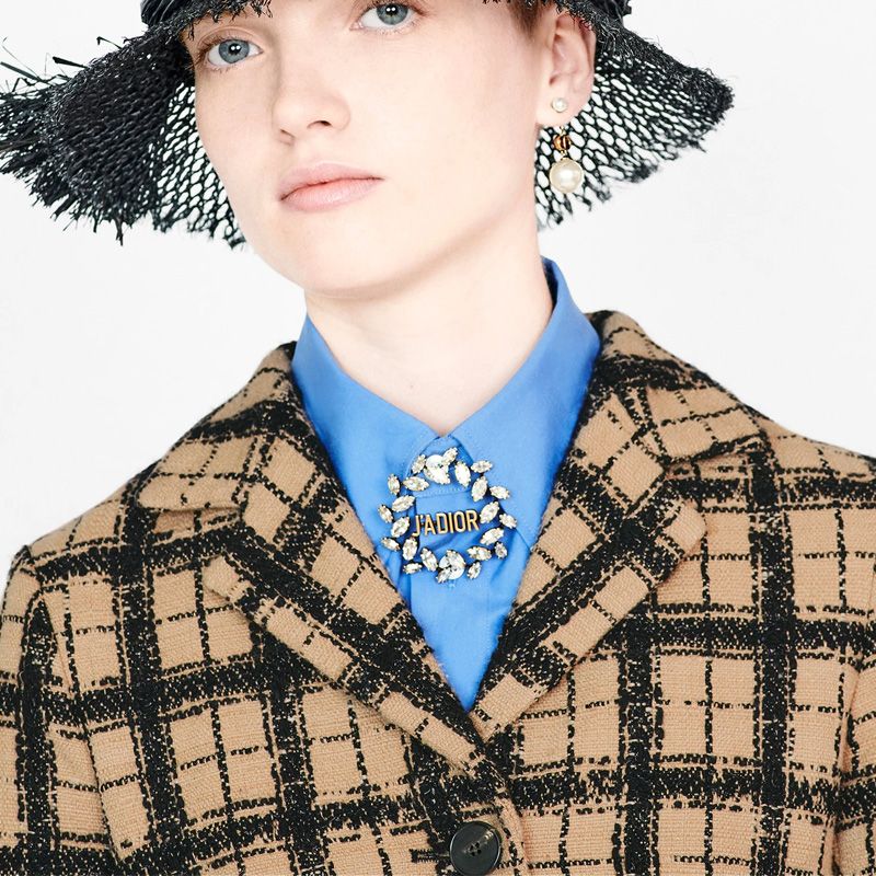Featuring the iconic J’Adior Circle, this brooch is embellished with shimmering white marquise-cut crystals that sparkle beautifully, making it a red carpet essential. Whether you’re dressing up for a gala or enhancing your everyday look, this brooch is versatile enough to elevate any ensemble.