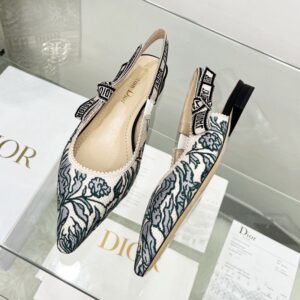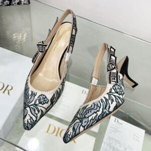 The canvas material is intricately embroidered with the enchanting Brocart Roses motif, showcasing a perfect blend of artistry and luxury. A standout feature includes the signature J’Adior two-tone embroidered canvas ribbon, which adds a distinctive flair to the overall design. The flat bow enhances the feminine touch, making these pumps versatile for both casual outings and formal occasions.