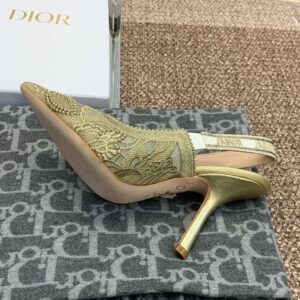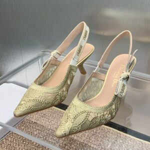 Are you ready to elevate your footwear collection? Inspired by the elegance of fashion icons like Audrey Hepburn, the J’Adior Slingback Pumps in Macrame Gold represent a revolution in chic comfort and style. These exquisite pumps feature a delicate macrame embroidered design adorned with a stunning D-Lace butterfly motif, effortlessly blending artistry with sophistication.