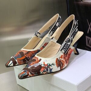 Are you ready to embark on a stylish journey? The J’Adior Slingback Pumps for Women, adorned with the enchanting Jardin d’Hiver motif, invite you to step into a world of elegance and flair. Crafted from high-quality white canvas, these pumps feature a vibrant, multicolored embroidery that tells a story of nature’s beauty.