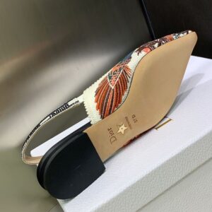 The exquisite two-tone embroidered cotton ribbon adds a touch of sophistication, beautifully complemented by a charming flat bow detail. Each element of these shoes is inspired by Christian Dior’s most cherished symbols, seamlessly blending classic style with contemporary design.