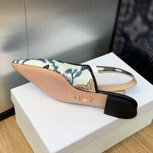 The design is enhanced by a two-tone embroidered cotton ribbon that showcases the signature J’Adior branding, while the flat bow adds a touch of sophistication. Additionally, the lace low-cut upper not only enhances comfort but also ensures a flattering silhouette, perfect for both casual outings and more formal occasions.