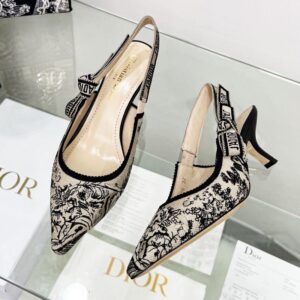 Introducing the exquisite J’Adior Slingback Pumps for Women, crafted from luxurious Toile de Jouy Sauvage Motif Canvas in a stunning beige hue. These pumps are not just footwear; they are a work of art, seamlessly blending elegance with contemporary design.