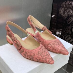 Celebrate elegance and sophistication with the stunning J’Adior Slingback Pumps, designed for the modern woman who values style and comfort. Crafted with meticulous care, these pink pumps feature a unique Toile de Jouy Sauvage motif, skillfully embroidered on durable canvas, epitomizing the perfect blend of art and footwear.