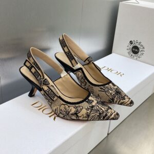 Step into a world where elegance meets artistry with the J’Adior Slingback Pumps, designed for the modern woman who dreams of sophistication. This exquisite pair features a stunning beige canvas adorned with the iconic Toile de Jouy Voyage motif, promising to elevate any ensemble. The unique design showcases a two-tone embroidered J’Adior ribbon, adding a touch of luxury to your look.