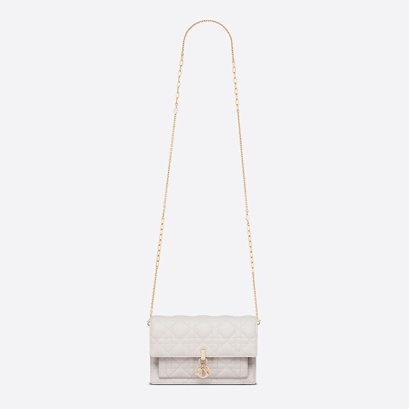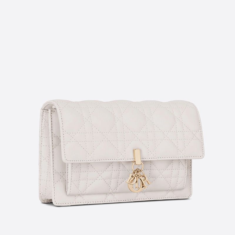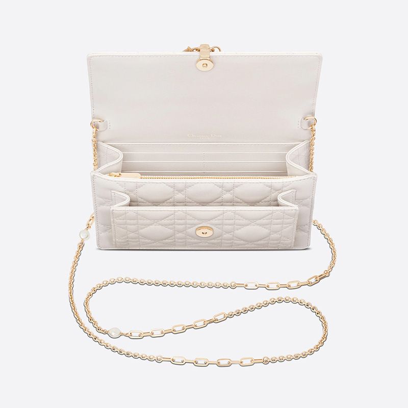 Lady Dior Chain Pouch Cannage Lambskin White