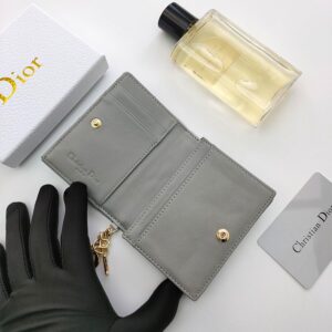Adorned with the iconic D.I.O.R charm, this piece is more than just a card holder; it’s a statement of sophistication and style. Inside, discover a thoughtfully designed layout that includes one gusseted compartment, two card slots, and two patch pockets. This organization ensures your essentials are easily accessible while adding a touch of luxury to your daily routine.