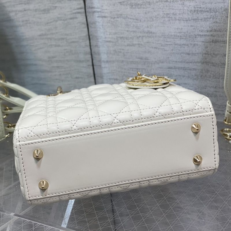 Crafted from luxurious lambskin, the bag showcases elegant Cannage stitching, highlighting its timeless beauty. Adorned with chic enamel D.I.O.R. charms, it effortlessly captures attention and reflects a sense of refined taste.
