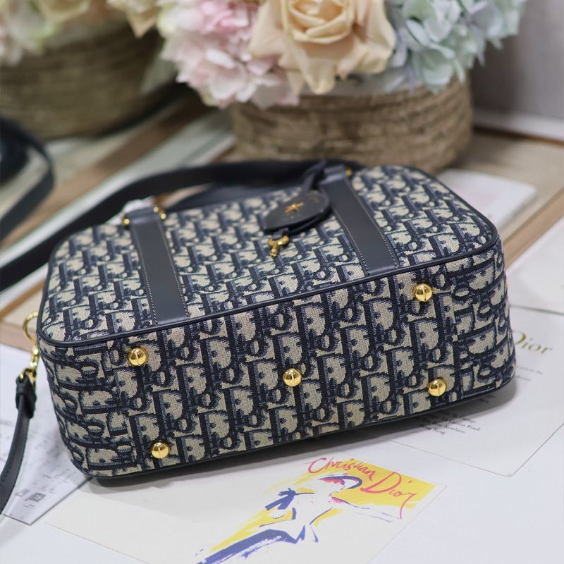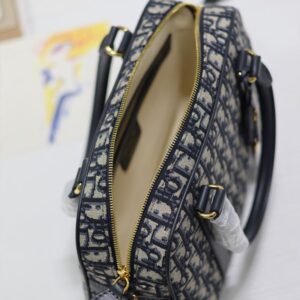 Elevate your style with the exquisite Large Dior D-Vibe Bowling Bag in a stunning Oblique Motif Canvas Blue. This elegant bag is not just a fashion statement but also a coveted collector’s item that reflects the timeless charm of Christian Dior.