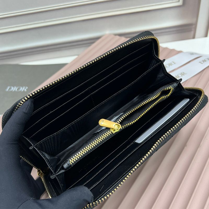 Introducing the exquisite Large Dior Zip Wallet in luxurious Cannage Calfskin, a masterpiece in elegant black. This sophisticated wallet is more than just an accessory; it’s a statement of style. Adorned with the iconic CD signature on its front, it captures the essence of haute couture, ready to turn heads wherever it goes.