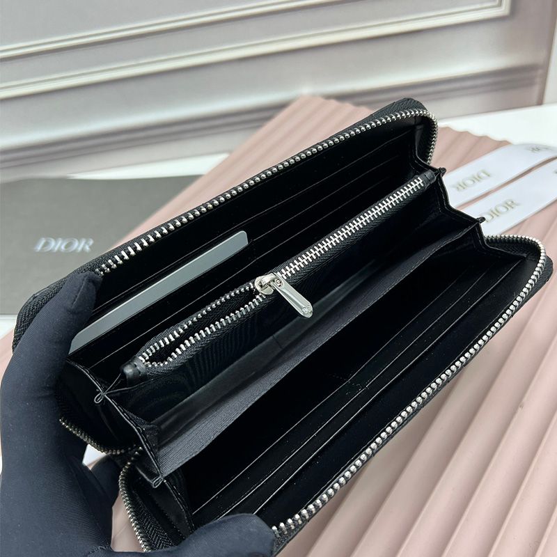 Large Dior Zip Wallet Cannage Calfskin With Dior Icon Signature Black