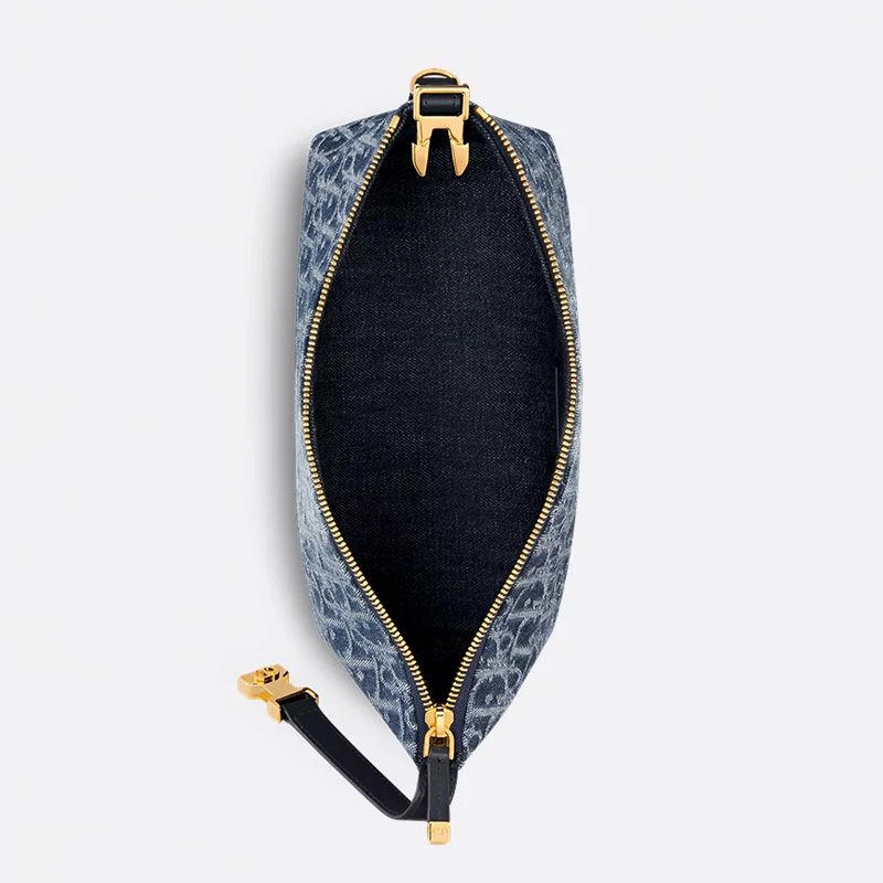 Crafted from premium denim featuring the iconic Oblique motif, this pouch combines functionality with chic aesthetics. The adjustable top handle, adorned with a classic CD buckle, allows for versatile carrying options, whether slung over the shoulder or held in hand. Secure your belongings with confidence thanks to the reliable zip closure, ensuring that your essentials are always safe.