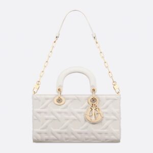 Introducing the Medium Lady D-Joy Bag, a stunning emblem of innovation and elegance in the world of fashion. This exquisite accessory showcases a striking Graphic Cannage motif, meticulously crafted from luxurious calfskin in a pristine white hue. With its sophisticated design, the Lady D-Joy Bag effortlessly elevates any ensemble, making it the perfect companion for both day and evening outings.