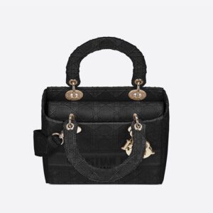 Embrace your individuality with the Medium Lady D-lite Bag in a stunning black color. This exceptional piece, crafted from durable canvas, showcases the iconic Cannage motif, symbolizing elegance and sophistication. Imagine this chic bag in the hands of your favorite celebrity, effortlessly accentuating their style.