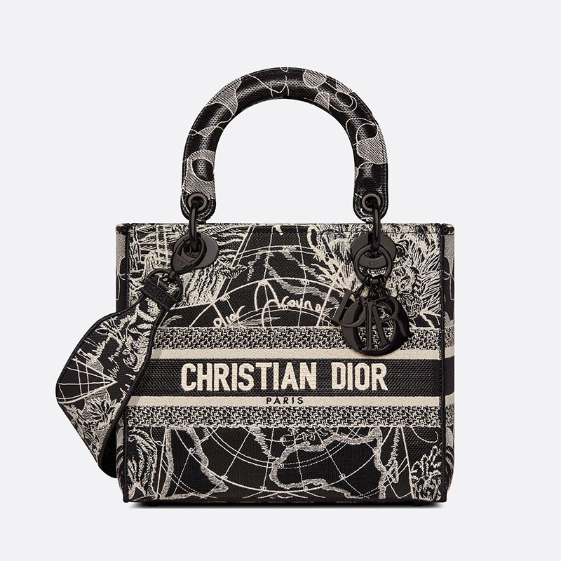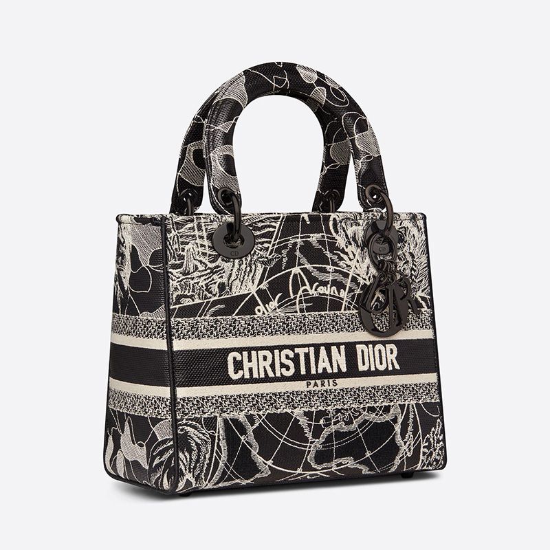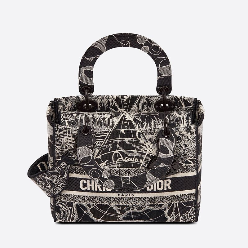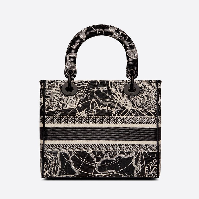 Embrace the artistry of travel with the Medium Lady D-lite Bag in the Around the World Motif Canvas Black. This stunning bag captures the essence of global exploration, making it the perfect companion for your adventures this season. Crafted in a versatile black canvas, the bag showcases exquisite embroidery that tells a story of diverse cultures and landscapes.