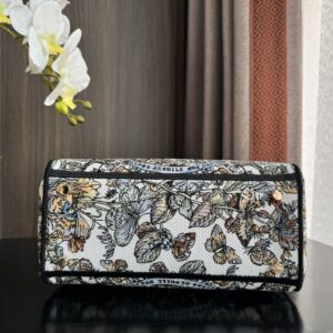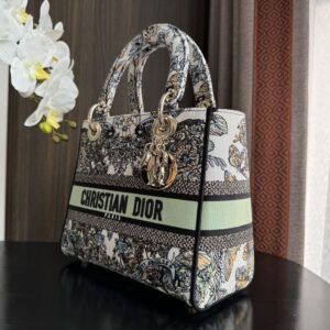 Timeless elegance meets contemporary flair in the Medium Lady D-lite Bag, adorned with the enchanting Butterfly Around The World motif. Have you ever wondered what it feels like to carry a piece of artistry? This delightful White and Green bag is a true statement piece that effortlessly complements any outfit.