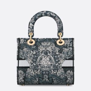 Medium Lady D-lite Bag In Flowers Around the World Motif Canvas Blue
