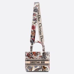 Embrace luxury this season with the exquisite Medium Lady D-lite Bag in Jardin d’Hiver Motif Canvas White. This stunning bag showcases a sophisticated white canvas beautifully embroidered with a vibrant Jardin d’Hiver motif. Elegance is reflected in every detail, including the iconic Metal D.I.O.R. charms that add a touch of glamour.