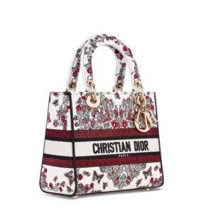 Confidence is woven into every stitch of the Medium Lady D-lite Bag, a true homage to Christian Dior’s rich heritage. Inspired by the enchanting Le Coeur des Papillons motif, this exquisite bag features a striking combination of white and red canvas that captures the essence of elegance and sophistication. Like a butterfly gracefully fluttering through a garden, this bag blends artistry with practicality.