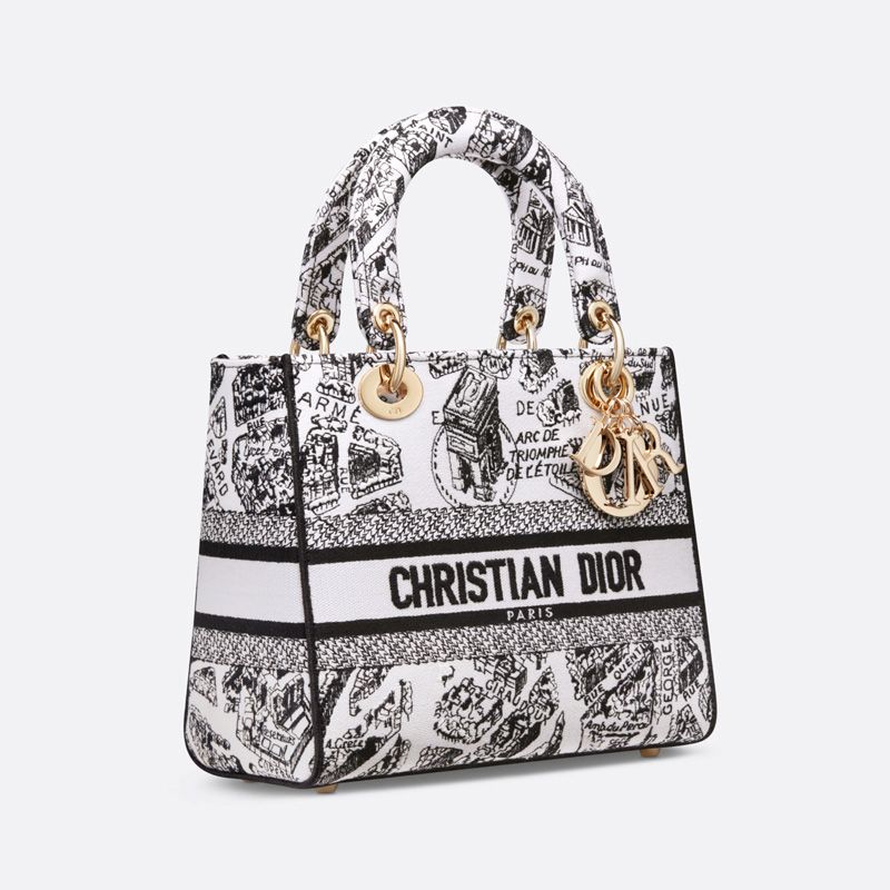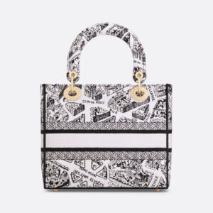 Celebrate the season in style with the Medium Lady D-lite Bag in a stunning Plan de Paris motif. This elegant white bag is not just an accessory; it’s a statement piece that embodies sophistication. Crafted from high-quality canvas, the exterior features a beautifully embroidered Plan de Paris design that adds a touch of whimsy and charm.