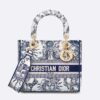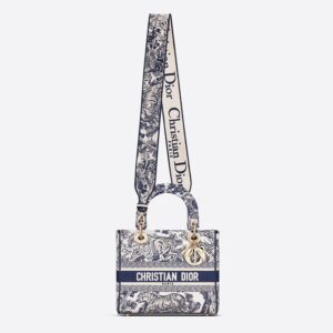Step into a realm of luxury with the Medium Lady D-lite Bag in a stunning Toile de Jouy motif canvas. This bag is not just an accessory; it’s a fashion revolution that embodies elegance and sophistication in every stitch. Crafted from high-quality canvas, the intricate Toile de Jouy design adds a touch of timeless artistry, making this blue handbag a standout piece.