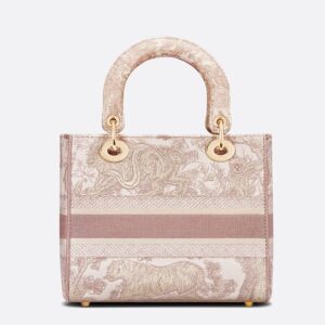 Embrace elegance this season with the Medium Lady D-lite Bag in exquisite Toile de Jouy Motif Canvas Cherry. For those who appreciate a blend of sophistication and practicality, this bag is the perfect companion. Imagine stepping into a sunlit café, the charming cherry design capturing the essence of timeless style as you greet friends with confidence and flair.