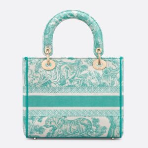 Medium Lady D-lite Bag In Toile de Jouy Motif Canvas Green