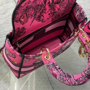 Are you ready to elevate your style game? Picture this: the Medium Lady D-lite Bag in a stunning Toile de Jouy Voyage motif, effortlessly complementing your chic ensemble. This exquisite Rose Lady D-lite Bag is not just a fashion accessory; it’s a statement piece crafted from high-quality canvas adorned with a captivating pattern.