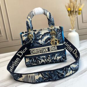 Are you ready to make a statement? Meet the Medium Lady D-lite Bag in a stunning Blue, where style and sophistication collide in a delightful dance! This exquisite piece showcases a vibrant canvas adorned with a charming Palms motif, transforming everyday fashion into a work of art.