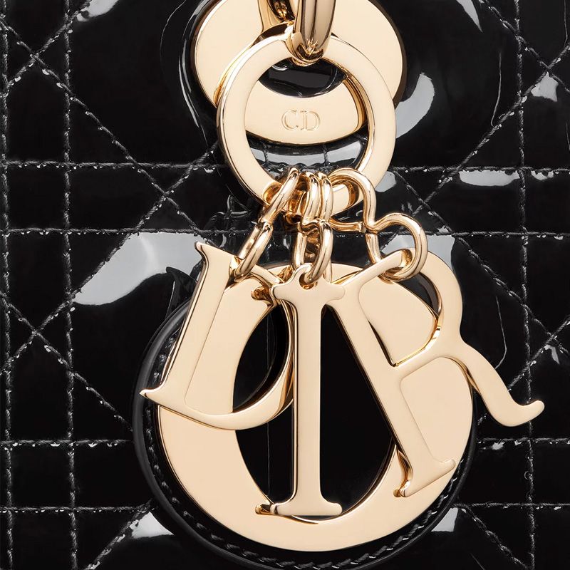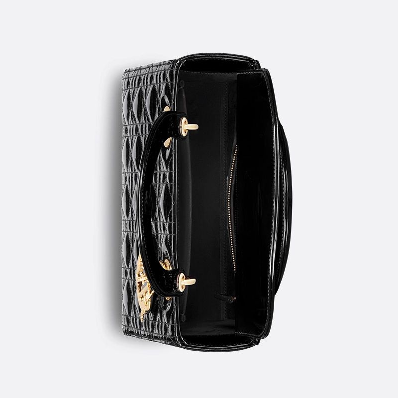 Medium Lady Dior Bag In Patent Cannage Calfskin Black/Gold