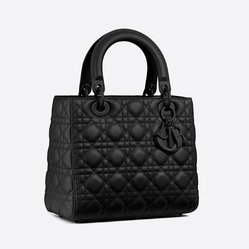 Introducing the Medium Lady Dior Bag in Ultramatte Cannage Calfskin Black, a timeless accessory designed for the modern woman. This striking bag features a sleek black finish that complements any outfit, making it a versatile choice for both day and night.