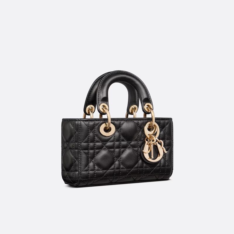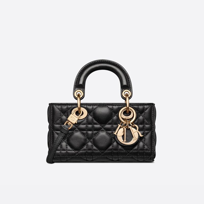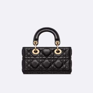 Introducing the elegant Micro Lady D-Joy Bag in luxurious Cannage Lambskin Black. This exquisite piece embodies sophistication and timeless style, making it an essential addition to any fashion-conscious individual’s collection. The rich black lambskin features iconic Cannage topstitching, a hallmark of luxury.