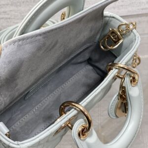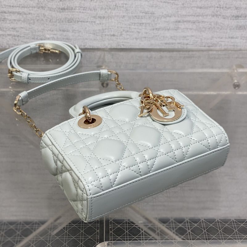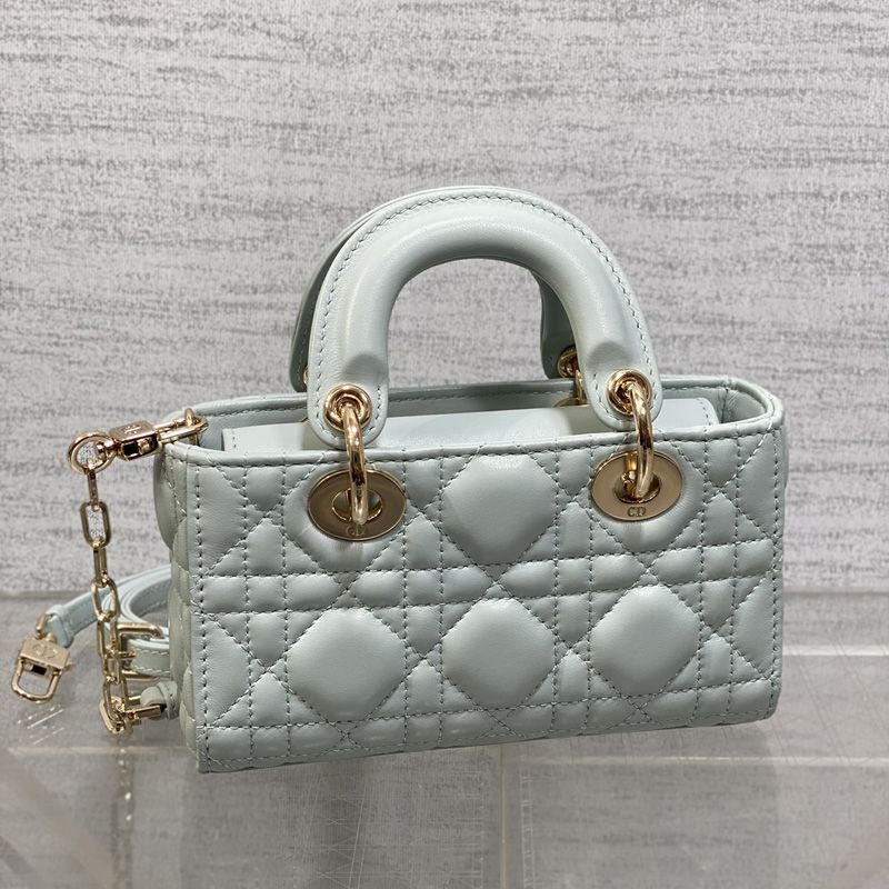 Timeless elegance meets modern style in the Micro Lady D-Joy Bag, crafted from exquisite Cannage lambskin in a captivating sky blue hue. This charming accessory not only enhances any outfit but also tells a story of sophistication and grace. Imagine strolling through the bustling streets of Paris, the sun casting a warm glow as you hold this stunning bag adorned with the iconic metal D.I.O.R. charms.