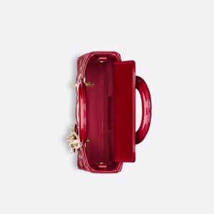 Micro Lady D-Joy Bag In Patent Cannage Calfskin Red