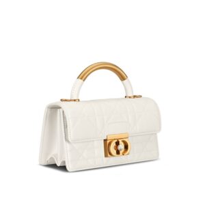 Introducing the exquisite Mini Dior Ange Bag, crafted from luxurious Macrocannage Lambskin in a pristine white hue. This stunning piece embodies elegance and sophistication, making it an ideal accessory for any fashion-forward individual. With its iconic calfskin construction, the intricate Macrocannage stitching adds a unique texture that sets it apart from ordinary bags.