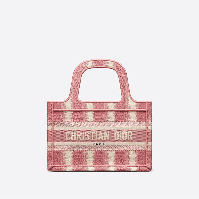 Celebrate your style with the Mini Dior Book Tote D-Stripes Motif Canvas in Pink! This chic handbag embodies elegance and sophistication for any occasion. Crafted from high-quality canvas, it features a striking embroidered D-Stripes motif that accentuates its contemporary allure.