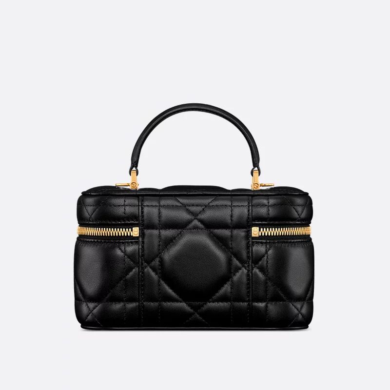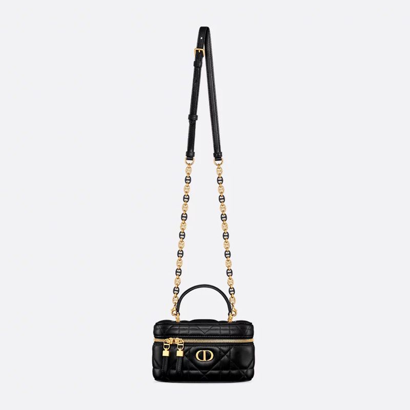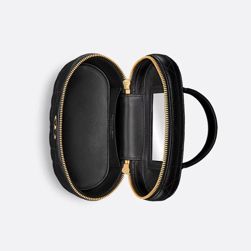 Mini Dior Caro Vanity Case In Macrocannage Lambskin Black