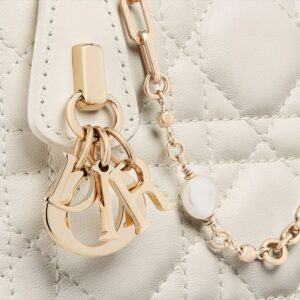 Featuring stunning metallic ‘D.I.O.R.’ charms, this bag not only serves functionality but also acts as a fashion statement. The adjustable and removable leather and chain shoulder straps provide versatility, allowing you to wear it as a shoulder bag or crossbody, adapting effortlessly to your style.