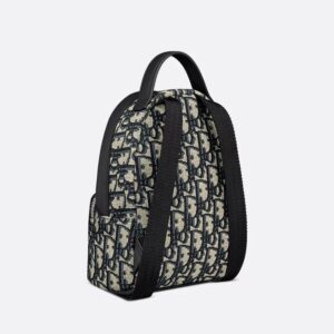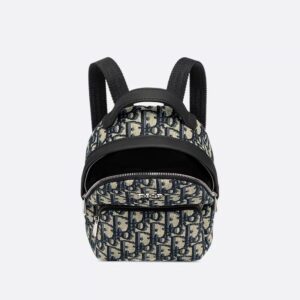 The front of the backpack is adorned with a sleek metal Dior signature, a hallmark of luxury and sophistication. For added convenience, it offers a front zip pocket, perfect for storing essentials like your phone or keys while on the go.