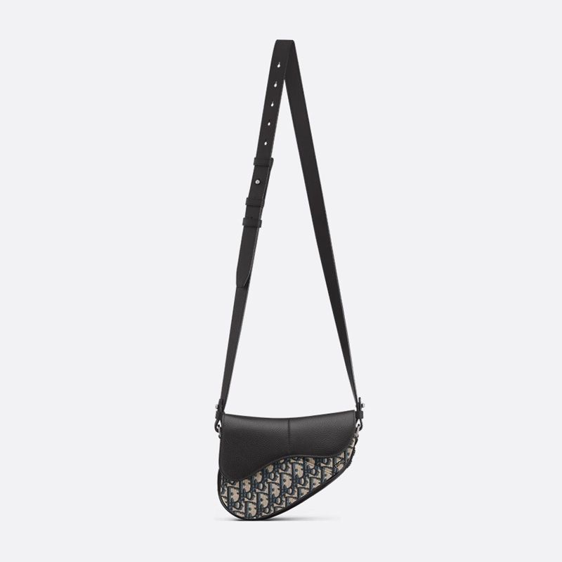 Elevate your style with the exquisite Mini Dior Saddle Bag, an embodiment of luxury and sophistication. Crafted from rich grained calfskin and adorned with the signature Oblique motif canvas in elegant Black and Blue, this bag is a statement piece that complements any ensemble. The iconic Dior signature elegantly graces the front, representing a timeless legacy in fashion.
