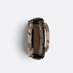 Crafted from high-quality canvas, this bag is beautifully embroidered with the iconic Toile de Jouy pattern, making it a unique accessory that stands out. Adorned with metal D.I.O.R. charms, it captures the essence of luxury and sophistication. The distinguished Christian Dior Paris signature gracefully adorns the front, reflecting the brand’s legacy of timeless fashion.