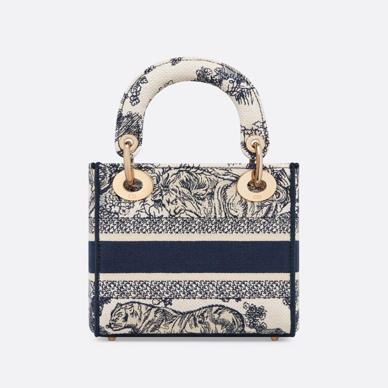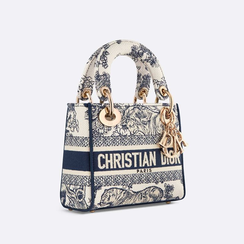 Mini Lady D-lite Bag In Toile de Jouy Motif Canvas Blue