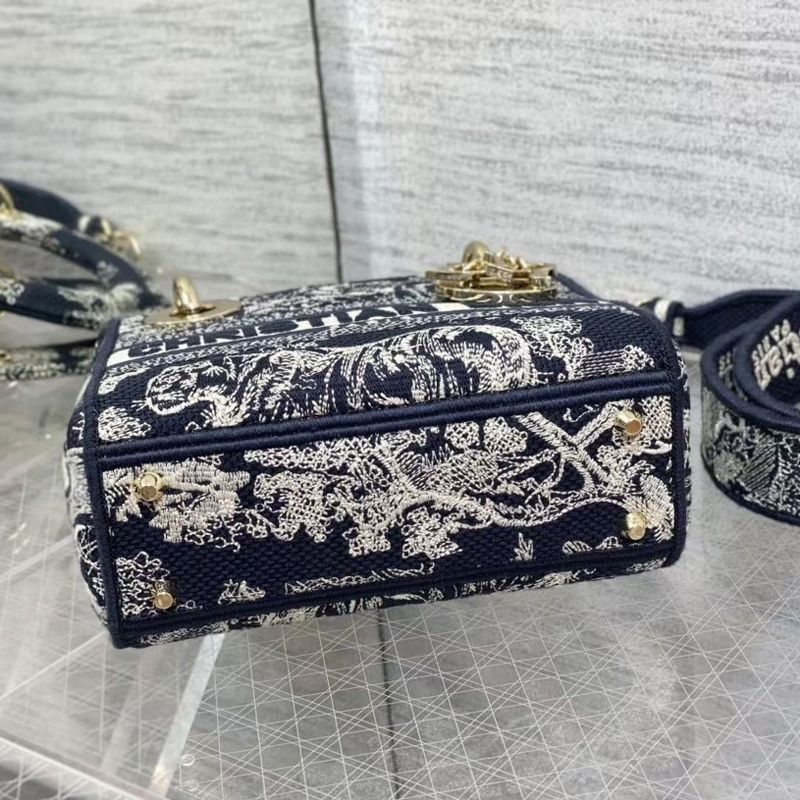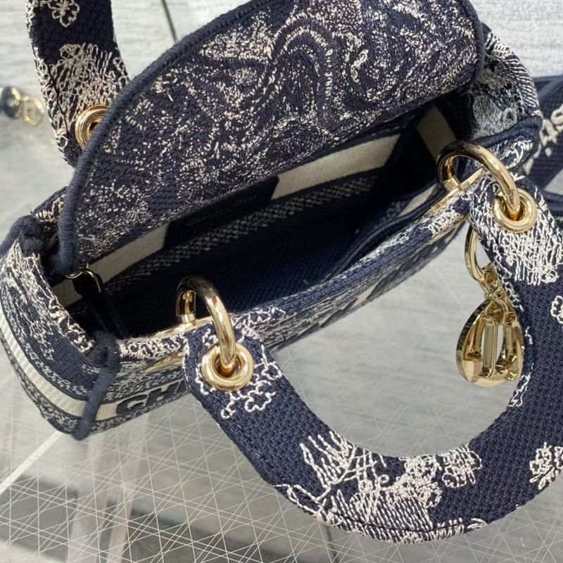 Mini Lady D-lite Bag In Toile de Jouy Motif Canvas Navy Blue