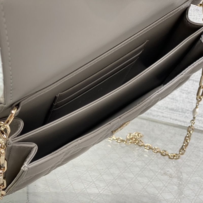 Featuring a chic top handle complemented by a removable chain strap, this versatile bag adapts to any occasion—be it a glamorous evening or a casual day out. The flap closure, adorned with a striking D.I.O.R. charm, not only secures your belongings but also adds a touch of allure.