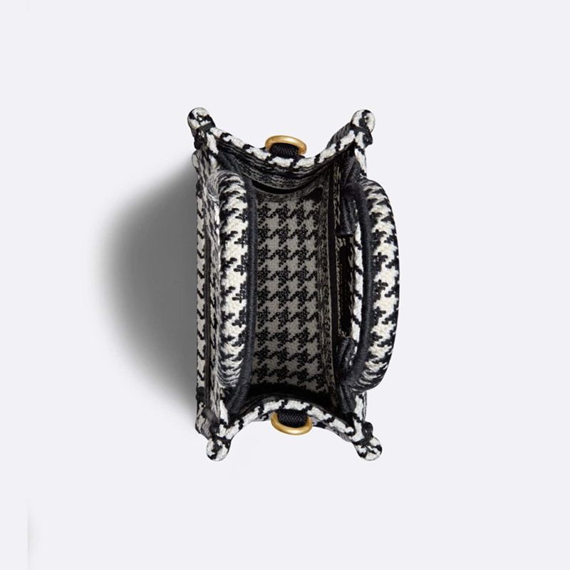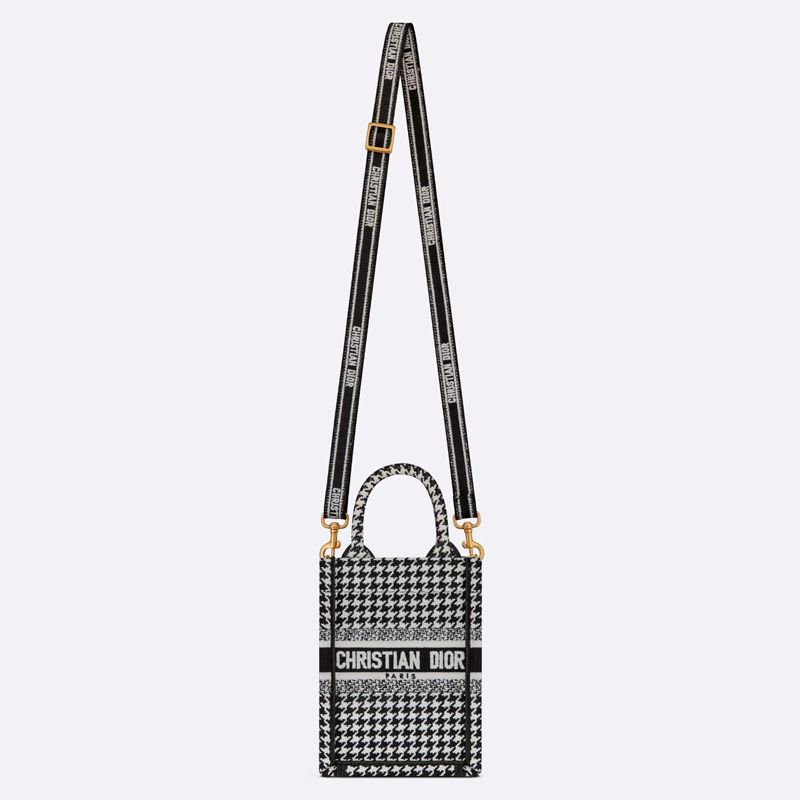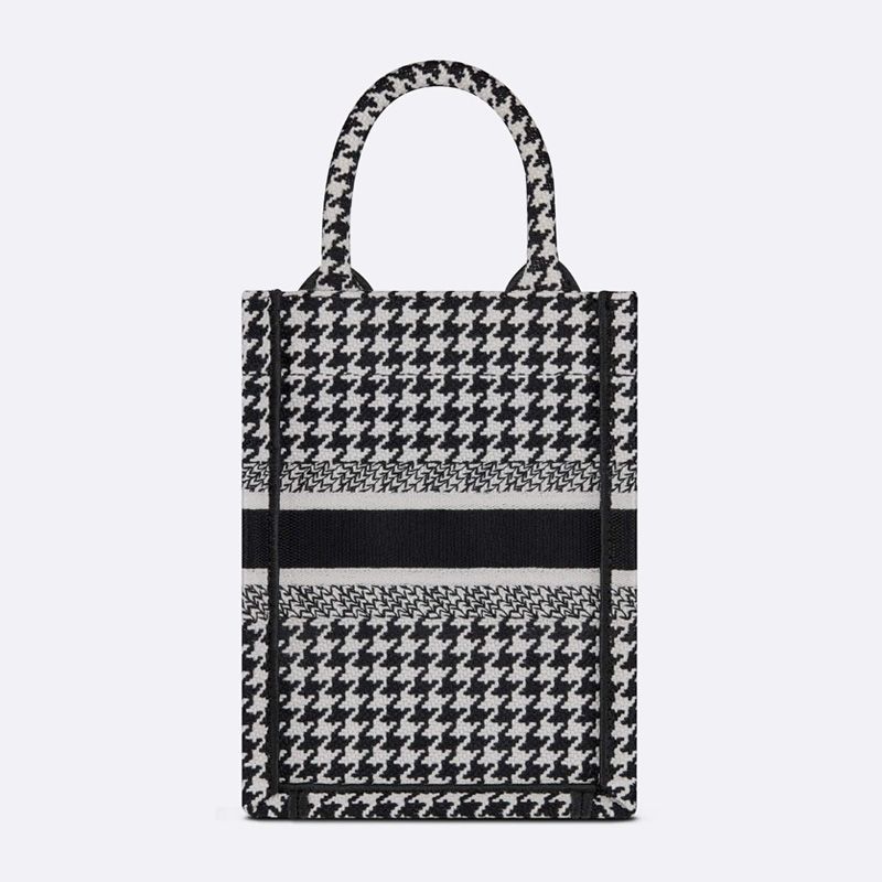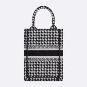 Mini Vertical Dior Book Tote with Strap In Macro Houndstooth Motif Canvas Black
