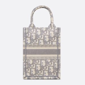 Elevate your style with the Mini Vertical Dior Book Tote in Oblique Motif Canvas Grey. This chic tote is a perfect blend of functionality and elegance, showcasing a stunning grey canvas adorned with the iconic Oblique motif. The front features the signature Christian Dior Paris, affirming its luxurious heritage.