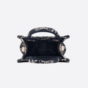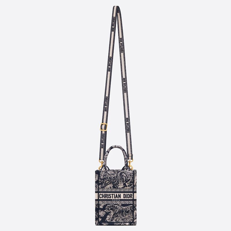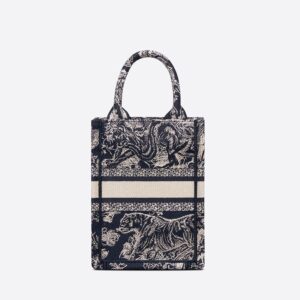 Mini Vertical Dior Book Tote with Strap In Toile De Jouy Motif Canvas Navy Blue